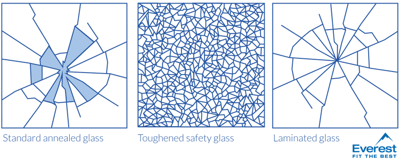 Glass is toughened by heating the pane to extreme temperatures of over 600˚C and then cooled rapidly. This results in a change to the break pattern of the glass.