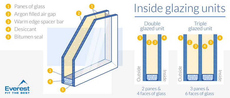 Triple glazing has three panes of glass held together in a glazing unit with two insulating air gaps that slow down the thermal transfer of cold or heat through the unit. This makes your home warmer and helps to reduce heating bills too.