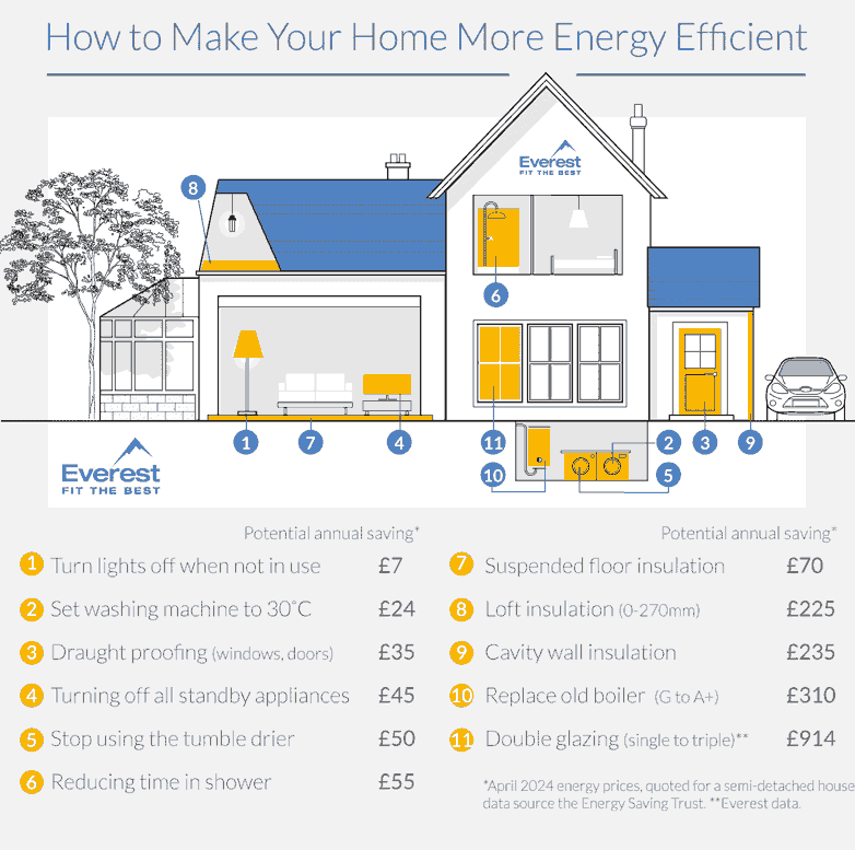 Before you start making any changes to your property, first of all, review how energy efficient your house currently is. The easiest way to do this is by looking at your Energy Performance Certificate (EPC).