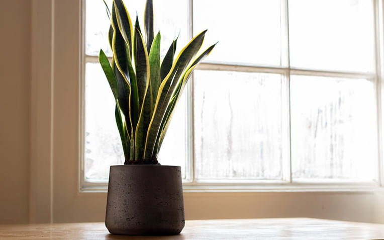 The hardy Snake Plant is known for its air-purifying qualities. its ability to reduce moisture in the air and is an easy to care for low-maintenance option.