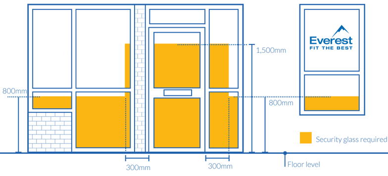 Safety glass is required by building regulations in glazed doors and windows at ground level (see below). But it can also be fitted to any windows or glazed doors you want to secure.