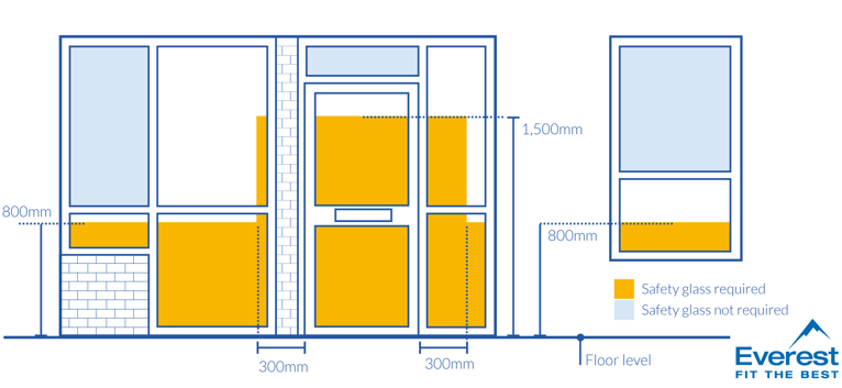 Safety glass is used in any area deemed a 'critical location' where there is a risk that if the glass could break it would cause serious harm and injury.