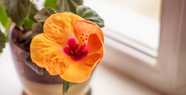 Tropical hibiscuses have large, showy flowers with brightly coloured, and occasionally patterned, petals which open, trumpet-like, around a central stamen. They can produce blooms in deep reds, pearly lilacs and warm corals, bringing bursts of colour into the home. The flowers will only last a day or two, but, if kept in the right conditions, will bloom for months on end.
