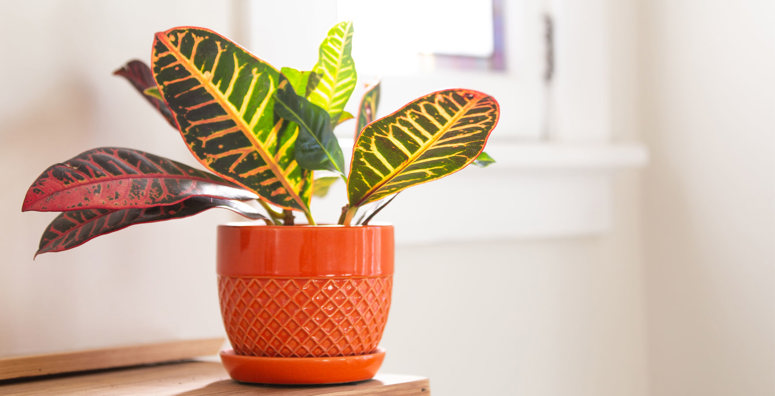 The croton needs bright, indirect light and a warm environment at a steady temperature, away from draughts or radiators. From time to time, give the leaves a wipe to avoid dust building up.