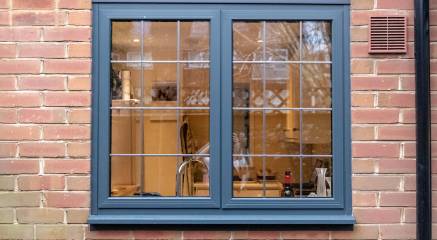 Everest installed Aluminium double glazed windows with rectangular leading, composite entrance door, aluminium sliding patio doors and LivinRoof extension.